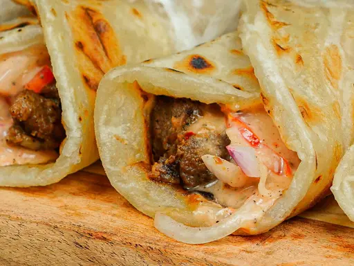 Wrapped in a soft paratha with fresh veggies and fiery seasonings.